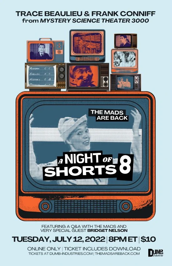 A live streaming show in which the Mads (Trace Beaulieu and Frank Conniff) riff a series of shorts.
