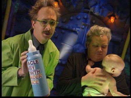 Segment One (Invention Exchange): Gypsy repairs the damage and tells Joel, Tom, and Crow to not play ball in the satellite again, but they still do.Joel invents the cellulite phone to keep dieters from ordering take-out. The Mads create a Miracle Baby Growth Formula that works a little too well.