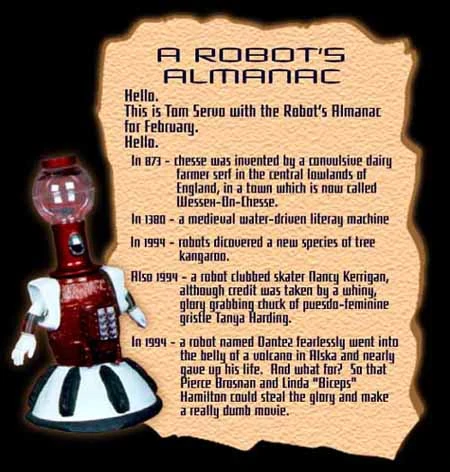 This is Thomas Servo with the Robots Almanac for February.