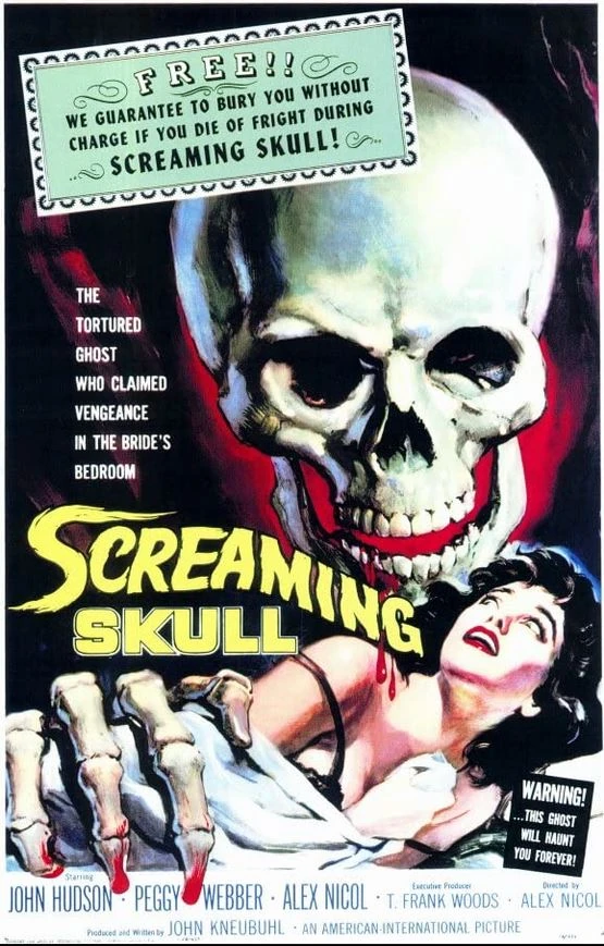 - This movie opens with a disclaimer offering free funeral services to anyone who died of fright while watching. Director William Castle made the same offer for his movie Macabre in 1958. Unlike Castle, The Screaming Skull's director Alex Nicol did not actually contact an insurance company.